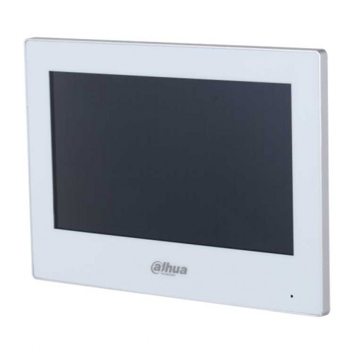 Монитор видеодомофона 7 дюймовый с WiFi 2.4ГГц, белый, 1024x600 разрешение, ёмкостной сенсорный экран; тревожные входы / выходы 6/1; SD карта памяти до 64Гб; Питание: DC 12В/PoE; Габаритные размеры: 135 мм × 190 мм × 26 мм; Установка на стену.