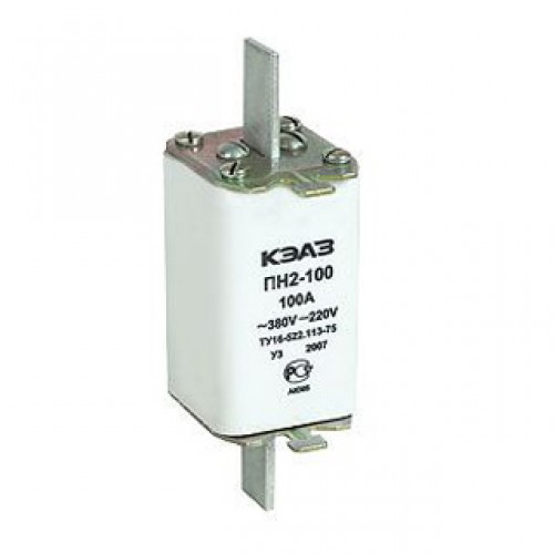 Плавкие вставки ПН 2 100 100А состоят из плавкого элемента, помещенного в фарфоровый корпус, который заполнен кварцевым песком и применяются для монтажа на собственном основании или проводниках комплектных устройств в качестве комплектующих.
