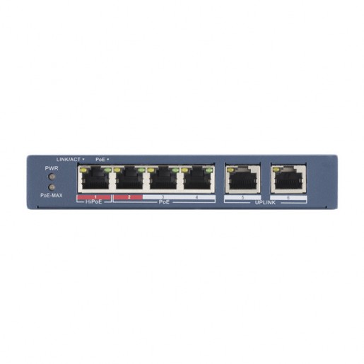 Hikvision DS-3E0106HP-E Коммутатор неуправляемый 100M PoE, Dual Uplink, L2